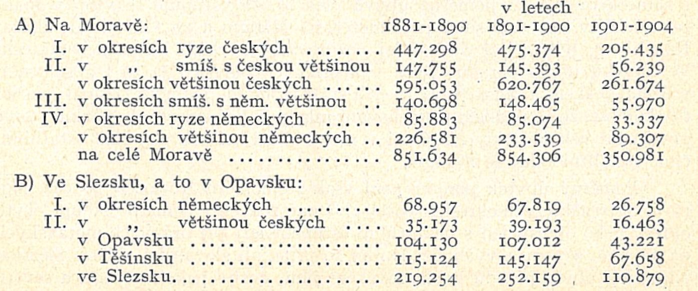 Početní vzrůst každého národa závisí na množství živě narozených; mrtvě narození jsou v tom ohledu beze všeho významu. Poměr mezi množstvím živě narozených a počtem obyvatelstva udává nám míru rozmnožování. Stanovíme si nejprve, jakou měrou rozmnožuje se populace jednotlivých národnostních území Moravy a Slezska a tím přibližně natalitní cifru Čechů, Němců a Poláků v 1. 1881—1904.