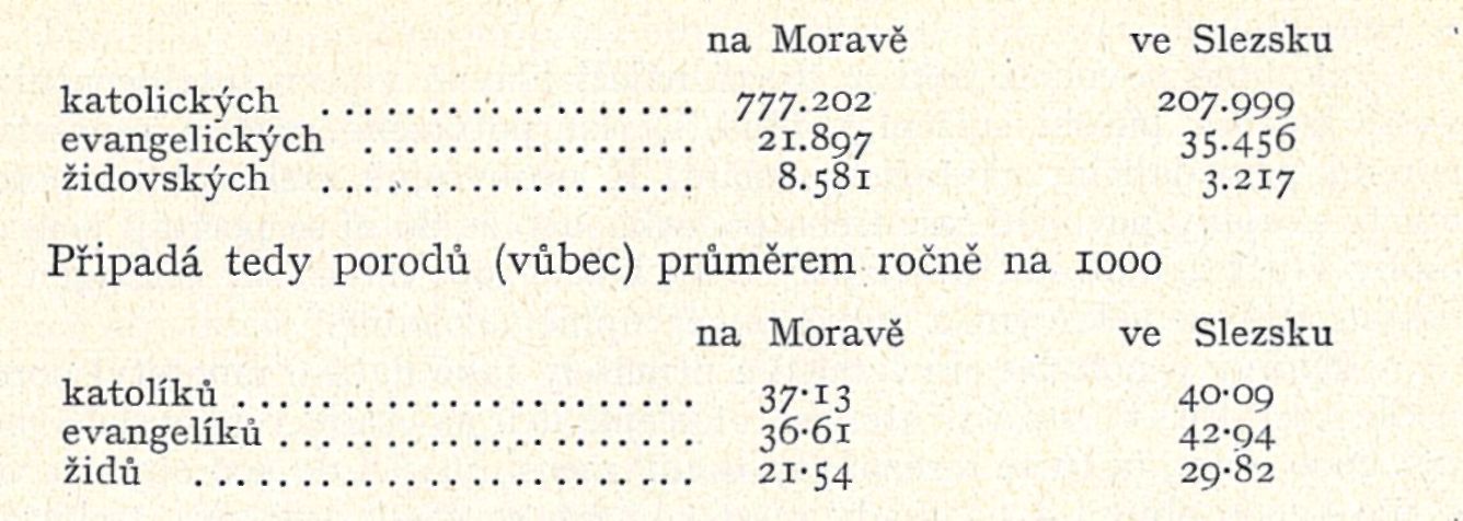 U„ židů, kteří náležejí téměř veskrze vyšším třídám společenským, jest v českých zemích plodnost velmi malá; jest značně nižší na Moravě než ve Slezsku. Mezi katolíky a evangelíky není velkých differencí, na moravské protestanty připadá dětí o něco méně, na slezské o něco více než na katolíky.