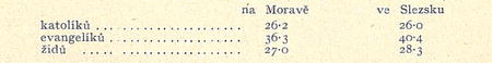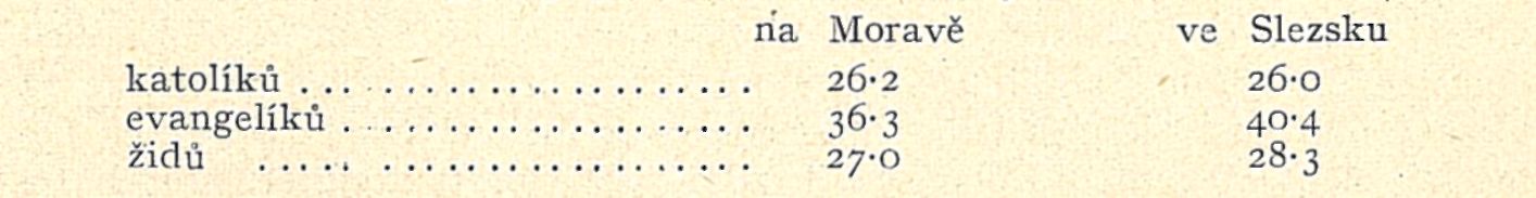 Čím si máme vysvětliti tento nápadný zjev, nevím. V Čechách v tom ohledu jsou u evangelíků poměry lepší (2,65% mrtvě narozených) než u katolíků (3,1%).