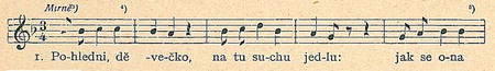 Naturalistický, naivní popěvek pokažen zbožnějším nějakým, ale tuze neumělým upravovatelem: fakt, který objektivnímu badateli sám sebou je zajímavý a který by beze stopy nezahladil, už proto, aby neměnil procento pokažených písní v menší.