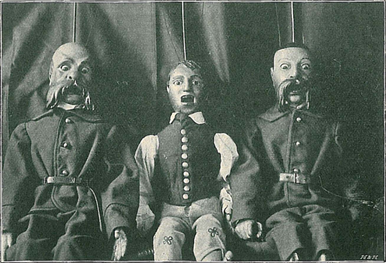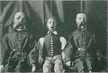 Obr.1. Trojice loutek Maiznerových s pohyblivými ústy a očima.