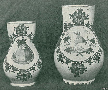 Džbány z konce 18. stol. malované trojicí barev: červenou, žlutou a zelenou. Tovaryši, kteří působili v této době, jsou: