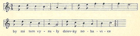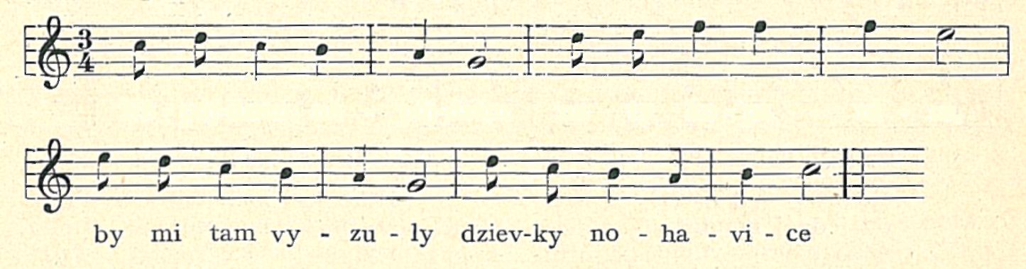 jsou takto velmi ostýchaví, někdy — vůbec nedostanete je ke zpěvu. Jsou nedůvěřiví, což je přirazeno: nestýkají se tak s cizím světem, jako my. Mají ostatně — jako každý člověk — i vnitřní důvody pro nedůvěru. Zpívají zase; tímž nápěvem:
