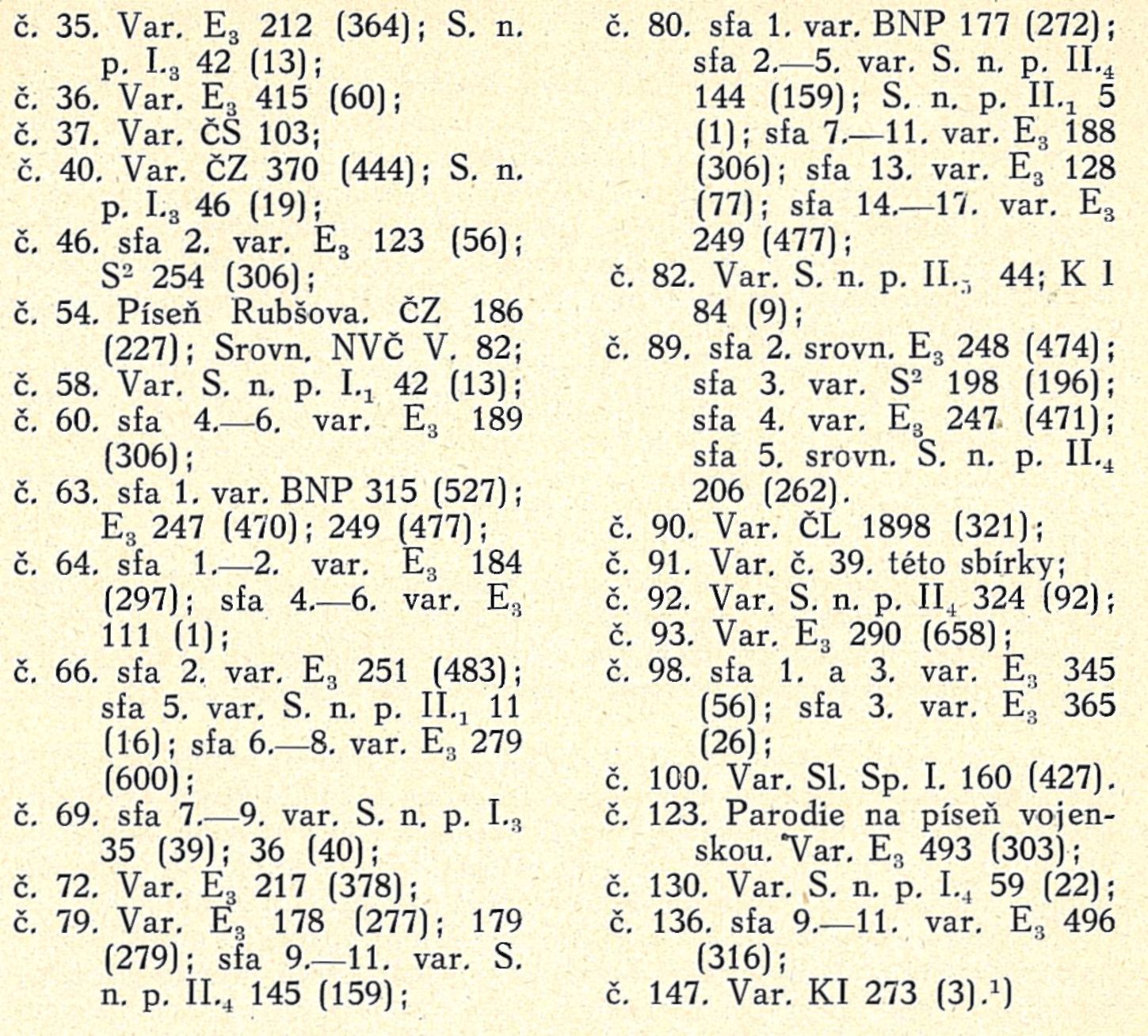 1) Podávám jen výbor z obšírného kommentáře. Všecky tyto referáty jsou totiž ukázkou podrobných prací srovnávacích, které jsem v letech 1909—11 vykonal v „Českém pracov, výboru pro lidovou píseň."