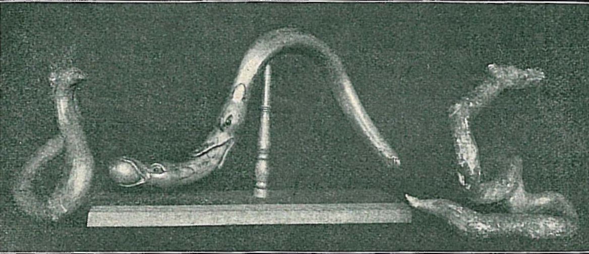 Na obr, 7. jest právo z Milostovic; je to kořen přirozeně zohýbaný a tvoří hada, požírajícího opět hada jiného, který drží v tlamě vejce. Také obě ostatní práva pocházejí z Opavska, Jiné právo jest též z Opavska, je v podobě hada s vyřezávaným letopočtem 1852,