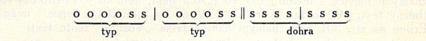Typy, varianty předešlého motivu a, jsou zcela stejné; vlastně je to opakování téhož typu, a také osmitaktová sousedská zcela opakuje čtyř-taktový motivek: