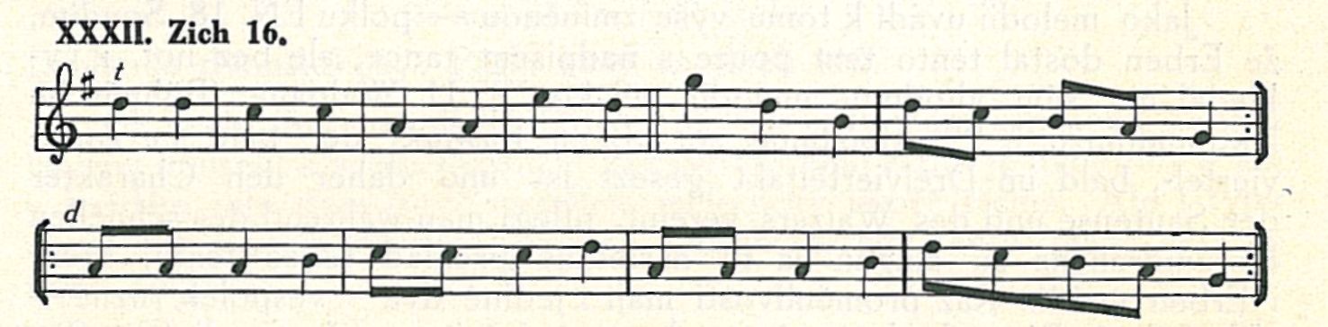 Motivy typů v prvním díle, až na závěr stejné, jsou malé varianty typů z mého zápisu ;44) typ závěrečný je melodicky přizpůsoben vložce, jež je osmitaktová — v originále ovšem jen čtyřtaktová, ježto celý tanec je zapsán v polovičních notách.