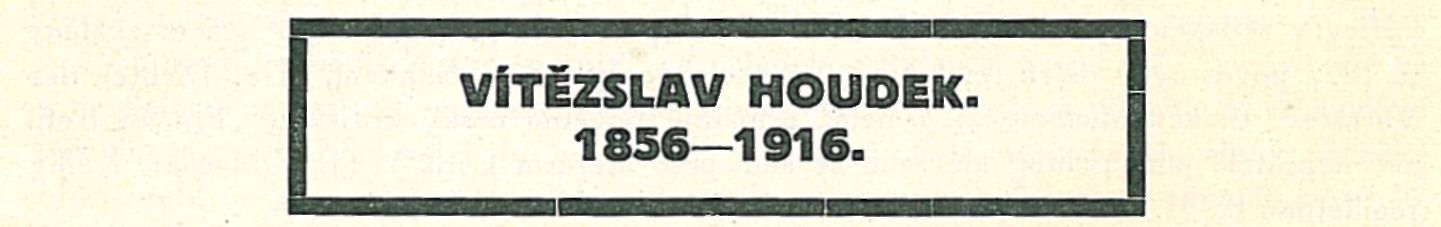 1. června t. r. zemřel Vítězslav Houdek, bývalý místopředseda moravského místodržitelství, nedovršiv šedesátého roku svého života věnovaného vedle obtížných prací úředních moravskému národopisu, starožitnostem a dějinám umění. Byl (od r. 1900) členem с. k. Ústřední komise pro výzkum a záchranu uměleckých a histor. památek ve Vídni a napsal pro jej! Mitteilungen několik stati, zejména však obohatil Časopis Matice moravské, Časopis muzejního spolku olomuckého a j. cennými studiemi, drobnými příspěvky a referáty svědčícími výmluvně jak o mnohostranném zájmu tak o pečlivých pozorováních a bedlivé činnosti sběratelské prodchnuté vroucí láskou к rodné zemi. Ve známém díle Österreichische Monarchie in Wort und Bild pojednal o osadách, příbytcích, pohádkách a pověstech moravských, byl odborným spoluredaktorem Vlasti-