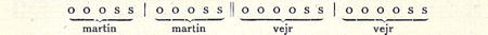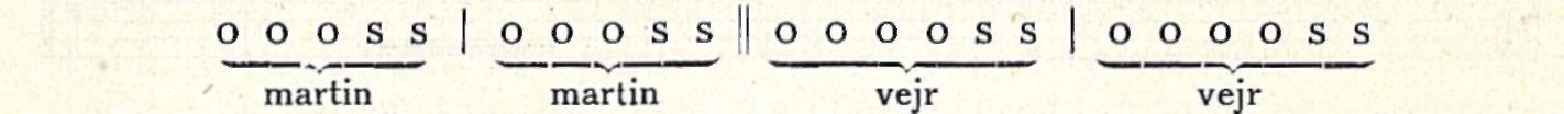 432, kde jest typ „zakončení sousedskou" (dvěma takty po osmi ob-kročákových). Rytmické schéma tedy jest