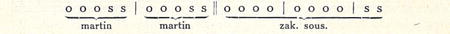 Dvoudobé takty „Martina" notují všecky ostatní zápisy nejen v notách polovičního trvání (čtvrťové místo půlových), ale se čtvrťovou pausou po třetí notě. Bylo by možno se domnívati, že tato třetí nota patří již do taktu trojdobého (podle notace zápisů ovšem do taktu tříosmino-vého, tedy s osminovou pausou) tak jako tomu skutečně bylo při typu „sýkorky" a „měkoty". Leč tomu odporuje jednak zápis můj, jednak to, že taneční popis uvádí na tyto tři noty tři kroky obkročákové, tedy i na notu poslední obkročák a nikoli sousedskou. Pausy takové vůbec není a lze si ji v zápisech vysvětliti jen snahou, vpraviti motivek do dvoučtvrtního taktu. Tanec C. L. 99, 432 zapsán jest jinak rytmicky správně, ale v notách polovičních. Oba druhé zápisy třeba opraviti ještě dle pravidla I.
