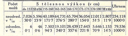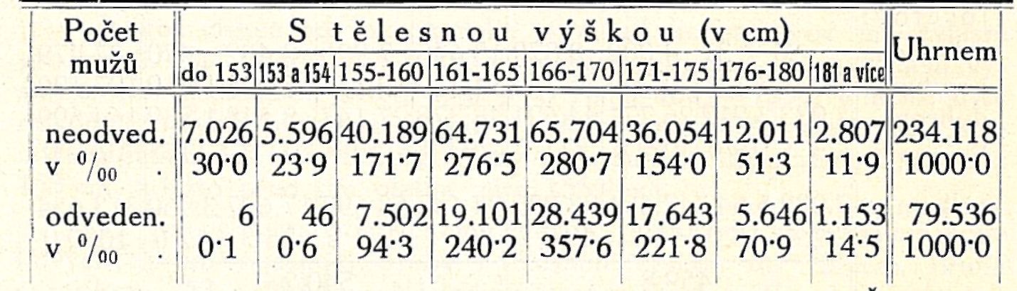 Průměrná výška neodvedených obnáší v Cechách 165,4 cm, odvedených pak 166,7 cm5).