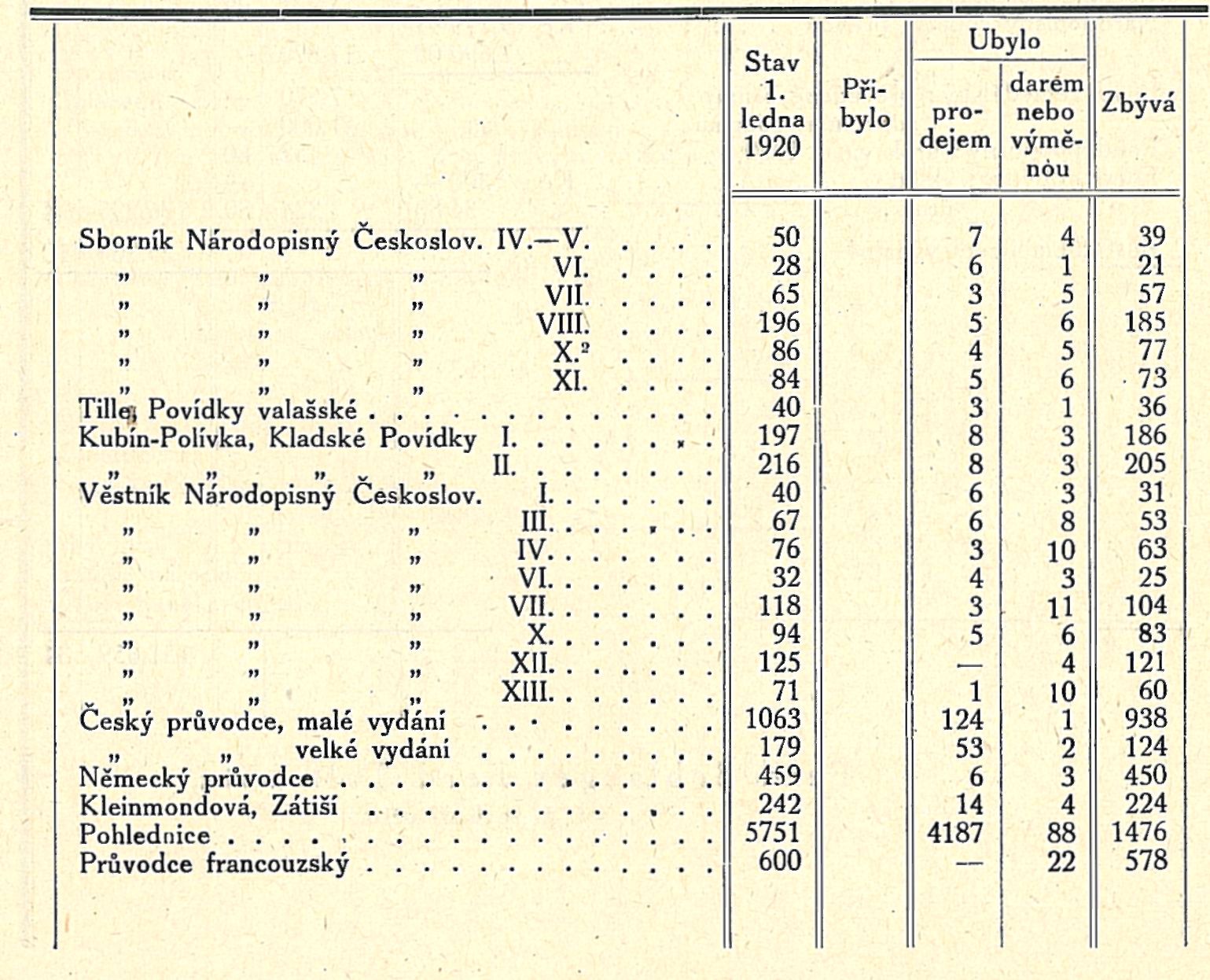 VÝKAZ SKLADU PRODEJNÝCH PUBLIKACÍ К 31. XII. 1920.