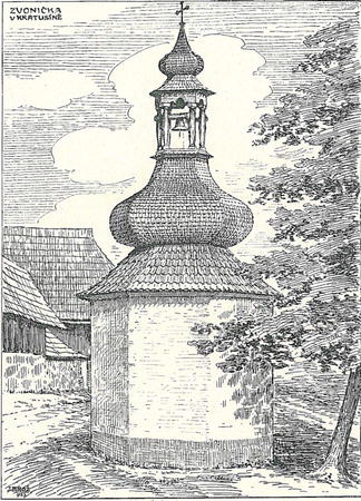 jihočeský mistr tesařský svou dovedností a postavil spoluobčanům vzor, jakých v okolí není. Celá střecha, červeně natřená, pokryta jest drobným šindelem, jehož každý kousek zvlášť vyřezáván, aby tvořil krajkovité linie jednotlivých Šárů. Ze nesloužil к její stavbě jednotný,