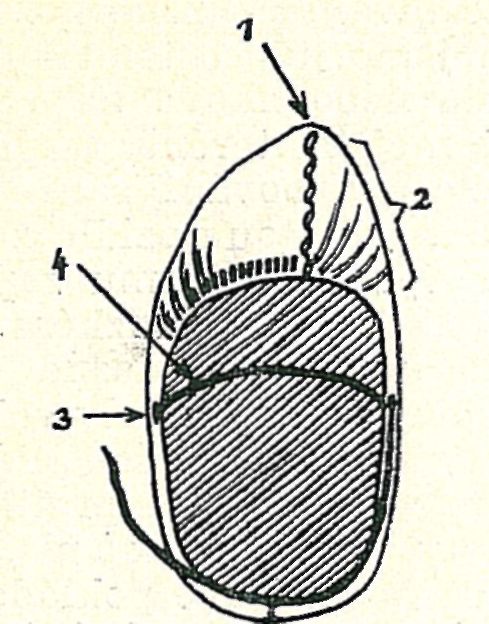 9. Krpec — xodák (Prislop): 1. pôsok. — 2. zbiranina. —3. ôstroka. — 4. obůvanec (reminec).