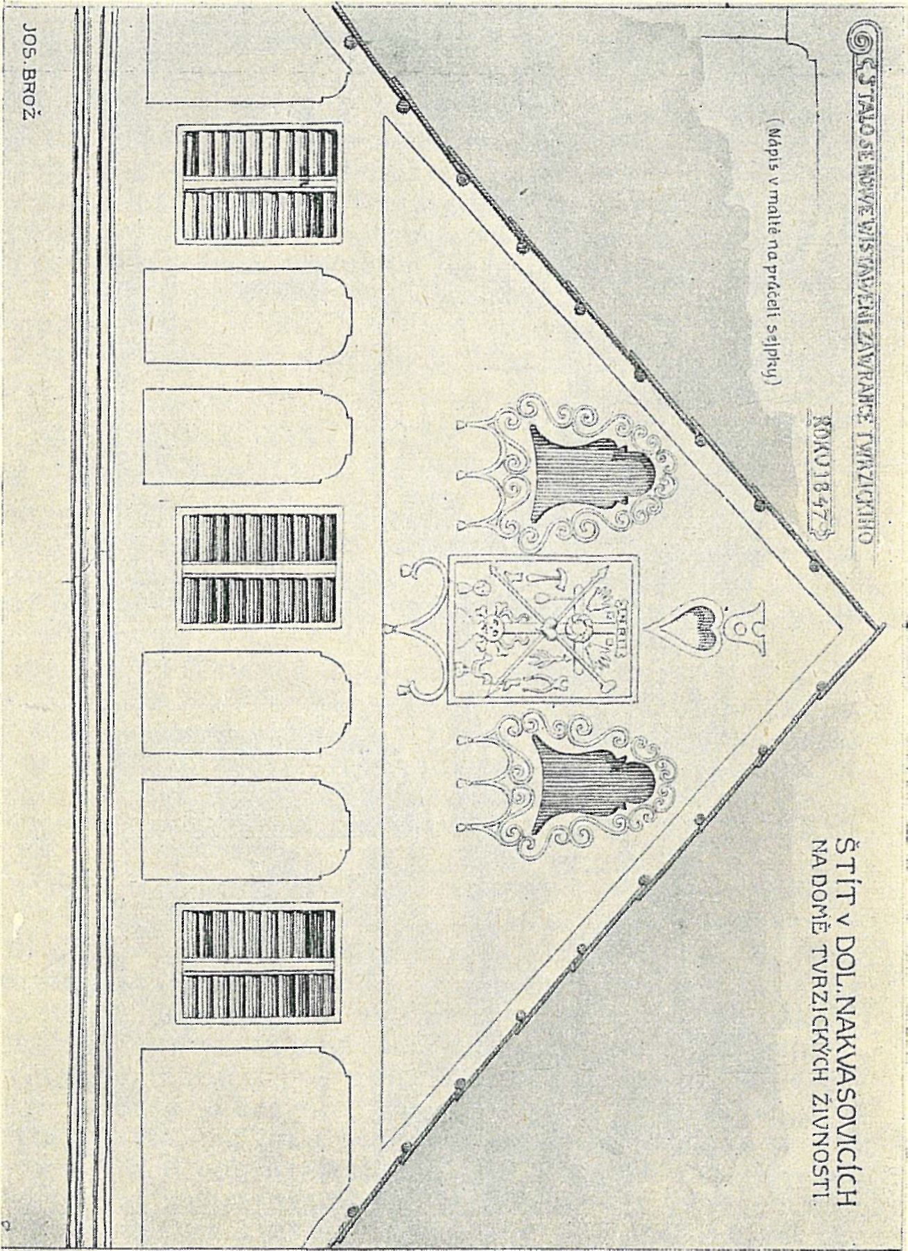 Štít na domě v Tvrzických v Dol. Nakvasovicích.
