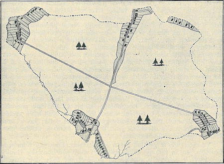 Obr. 2. Království. I. Příklad vzniku sídel uprostřed lesů. Skizza z r. 1836.