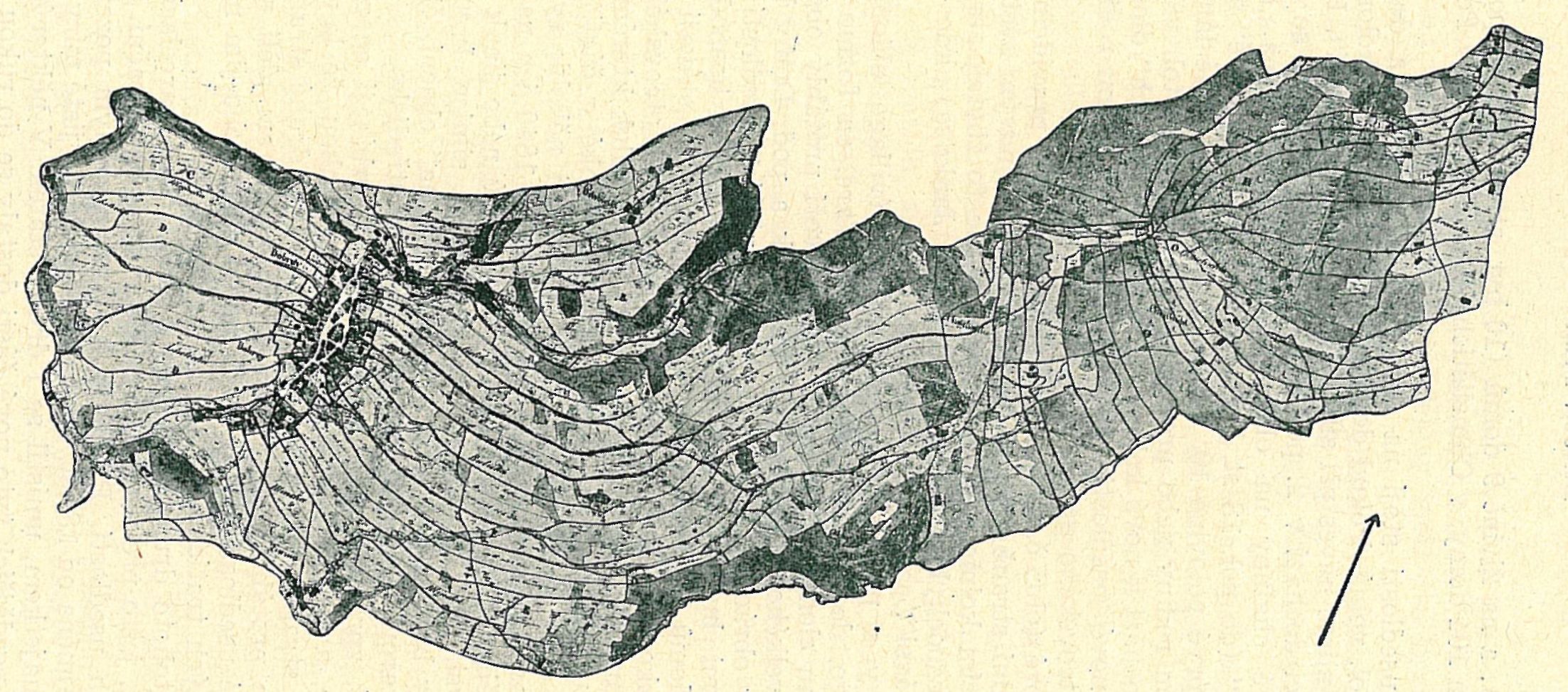 Na vých. straně katastru je zachován systém pozemků po zanuklé osadě. Skizza z r. 1840. Vesnice vznikla mezi r. 1157—1260. Měř. cca 1:34.848.
