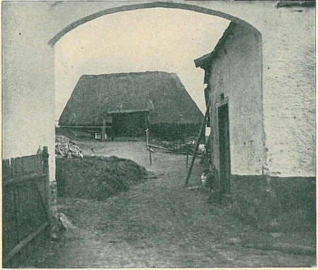 na rovine severne od nového kostela. V dolní části vesnice upomíná na plánek z r. 1727 i roubená stodola, jakých nyní je rovněž málo zachováno. Uzavírá dvůr u statku č. 25 (obr. ě. 15).