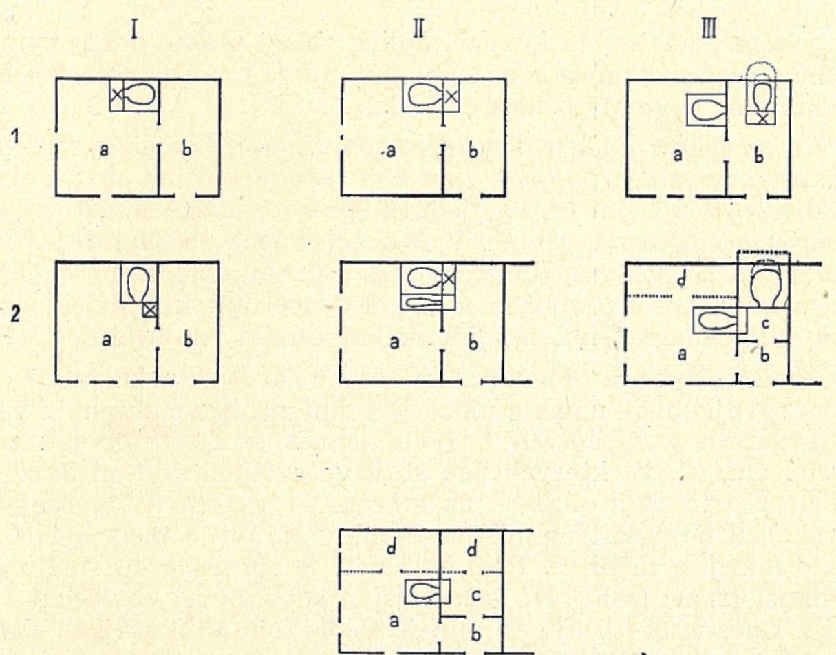 I. Pec i ohniště stojí ve světnici. 1. typ obecně slovenský, 2. typ rozšířený/v severovýchodních krajích republiky. II. Pec, resp. kamna stojí ve světnici, ohniště v síni. III. Kamna stojí ve světnici, pec a ohniště v sini. 1. Typ z východního Slovenska, 2. typ z Čech. tv. Kamna stojí ve světnici, pec stojí mimo dům.