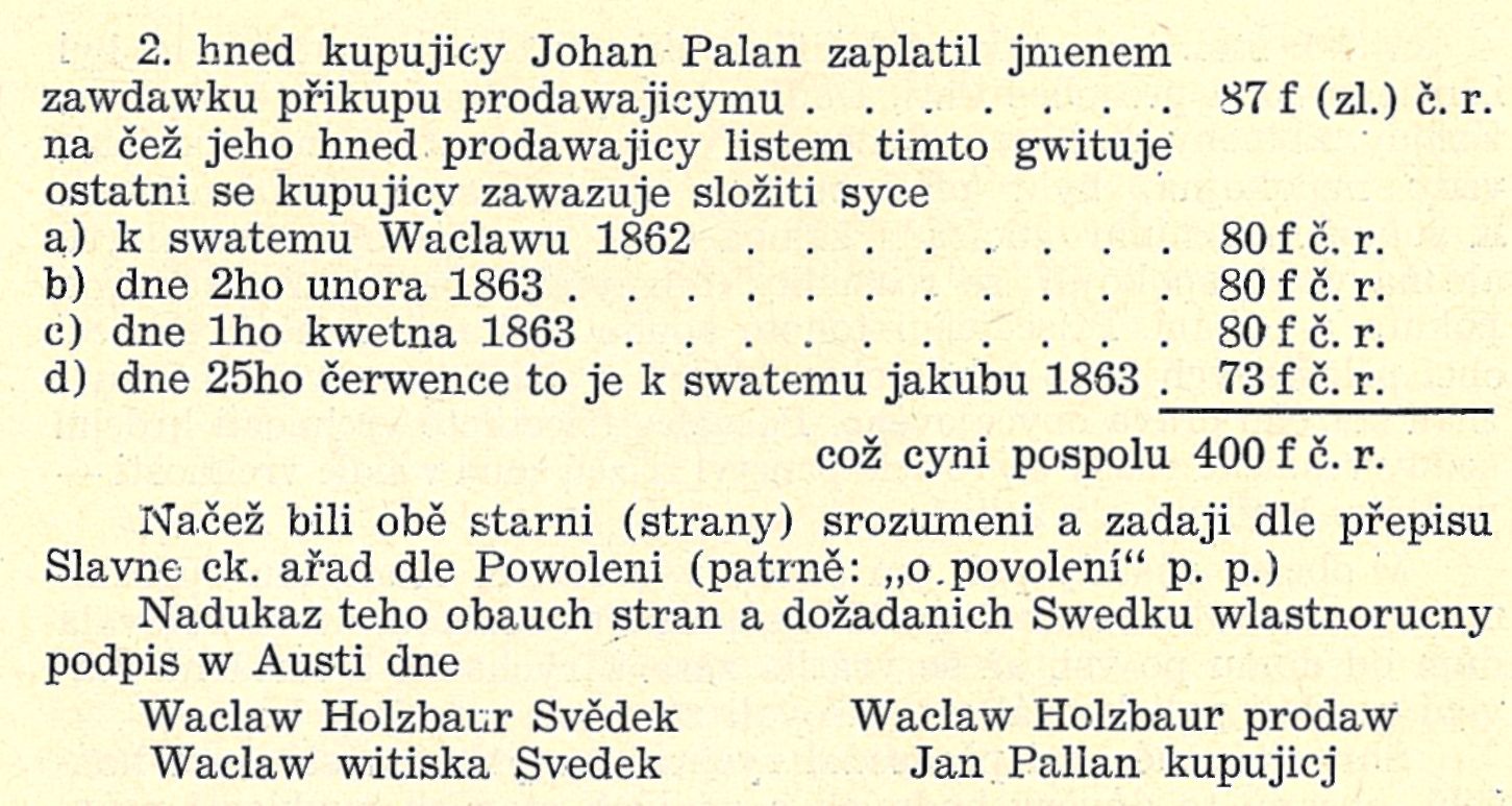 Za souseda do obce přijímali jen, kdo déh se v obci zdržoval a choval se bez úhony. Nový soused platíval také hned poplatek do obecní pokladnice za zápis svého jména, kterým bývalo zpravidla jméno po doškách. V pokladním denníku obce V. Jeníkova vykazuje se sumou 10—25 zl. „za přigmutj". Výše její stanovila se dle kabátu.