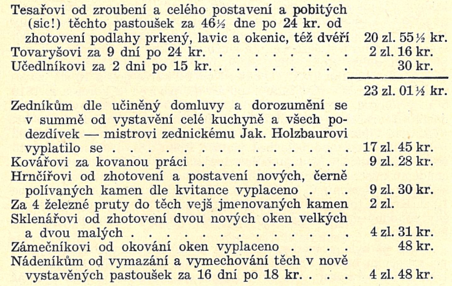 Obecní domky, k. nimž náležely pastouška a někde i kovárna, pronajímaly se neb propůjčovaly za jisté služby. Obec stavěla ve vlastní režii. Zachoval se zajímavý účet ze začátku 19. století o stavbě obecních pastoušek ve Větr. Jeníkově. Poněvadž ukazuje, jak nákladně se takové budovy stavěly, z jakého materiálu, jakými řemeslníky, za jakou mzdu a poněkud i jak byly seřízeny, neváháme ho tuto podati: