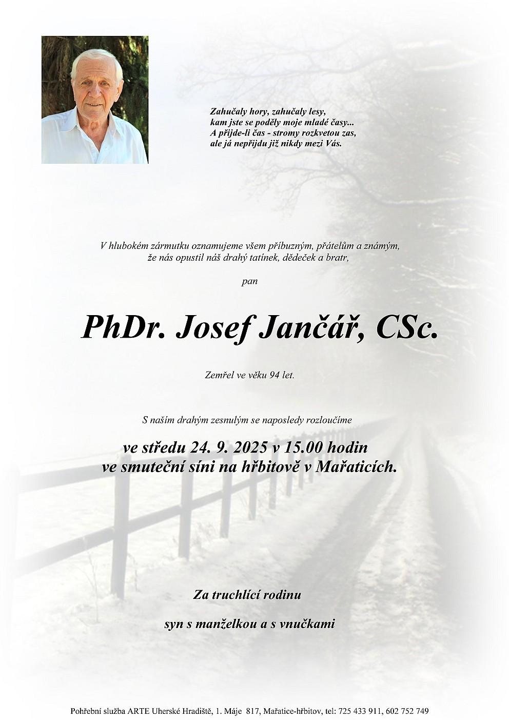 S hlubokým zármutkem oznamujeme, že v pondělí 8. 9. 2025 zemřel emeritní ředitel Národního ústavu lidové kultury PhDr. Josef Jančář, CSc., uznávaný etnograf, etnolog, muzejní a vědecký pracovník.