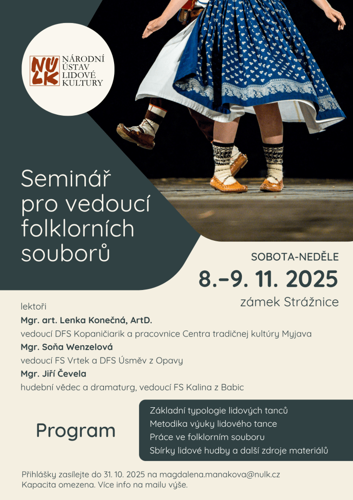 8.–9. 11. 2025 v prostorách zámku Strážnice pořádá Národní ústav lidové kultury Seminář pro vedoucí FS.