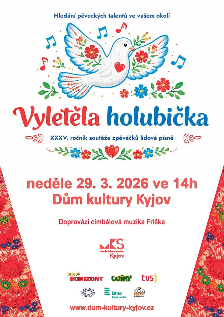 V neděli 29. března se uskutečnil XXXV. ročník soutěže dětských zpěváčků v lidové písni Vyletěla holubička 2026. Celkem se soutěže účastnilo 32 soutěžích v 6 věkových kategoriích a 3 nesoutěžní duety.