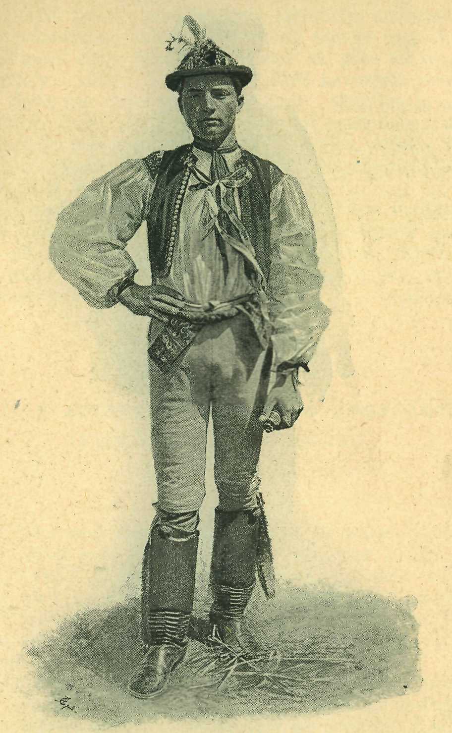 Zvláštní skupinu mezi slováckými oděvy („haby") nalézáme v několika dědinách nad Kyjovem, kde Slováci, zde většinou překrásně rostlí a znamenitého typu, nosí koženky (obrázek junáka z Moravan).