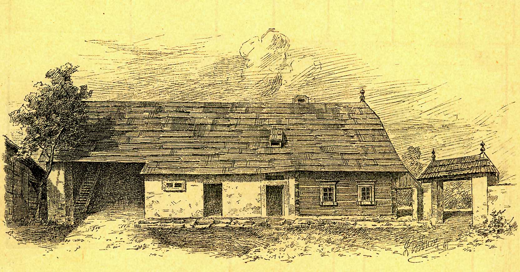 Čís. 2. Pohled ze dvora na chalupu. Kresba prof. V. Lindnera.