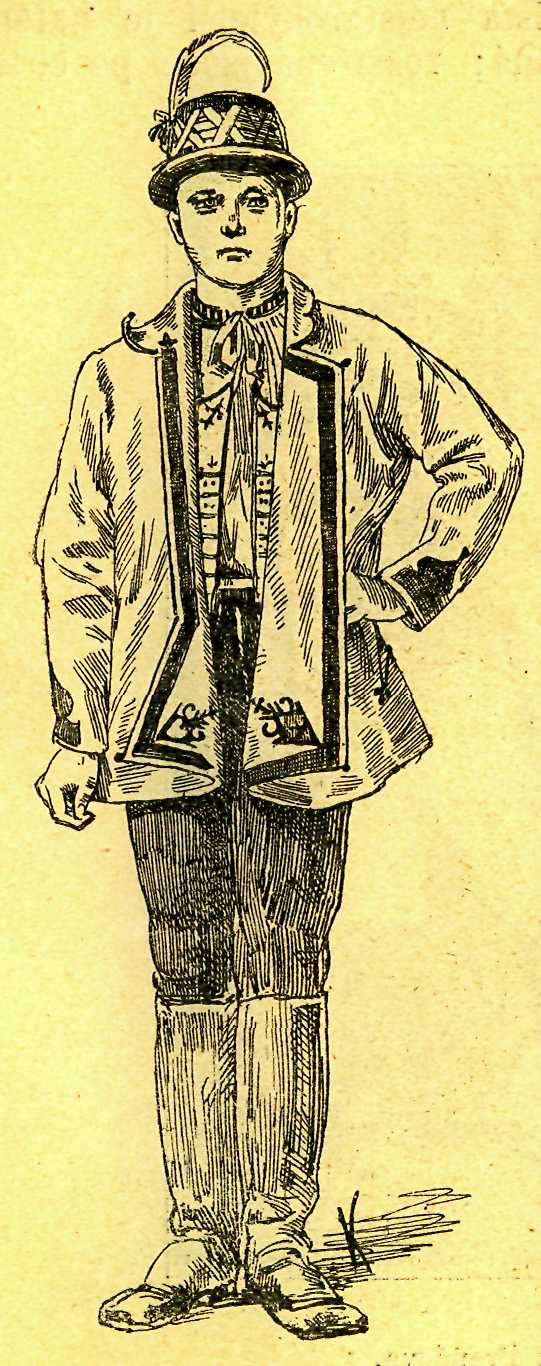 sakovitě zašity. Sepnouti dá se jediné na prsou párem řemenů na přezku. Připevnění řemenů k haleně dává rozličný ornamentální motiv; řemeny rozřezávají se po délce v několik pramenů, které se rozmanitě do haleny provlékají aneb mezi sebou vážou, takže se tu objevuje často krásný tvar, velikou sponu antickou připomínající. (Viz obr. č. 29. mužů z Prenčova.) Pro svůj veliký čtyřhranný límec bývá někdy halena srovnávána s šubou, která v první i druhé polovici 16. století se stala módním vrchním oděvem téměř celé západní Evropy. Tak připomínáme zde jen ustálené zjevy Karla V. něm. císaře, francouzského Františka I. a anglického Jindřicha VIII., kteří na obrazích vždy v šubách jsou zobrazováni. Šuby ty širokými rukávy, velkým čtyřhraným límcem a i přeložením předních částí připomínají nám halenu kožešinou podšitou, a není nejmenší pochyby, že tu značná příbuznost stává. Leč kdo zodpoví, byla-li forma ta přenesena ze západu na východ aneb šla-li věc směrem opačným. Nechtíce tu přílišným rozborem věci zaběhnouti, dovolíme si přece podotknouti několik poznámek, jež dovozují, jak se ke druhému pravda