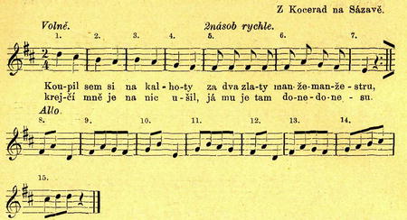 1.— 4. dvojice (páry) j. obyčejně do kola připraveny jsouce tančí 4 po-sunné, houpavé kroky (co takt to krok) v před přímo (ne se otáčejíce).