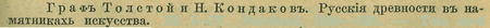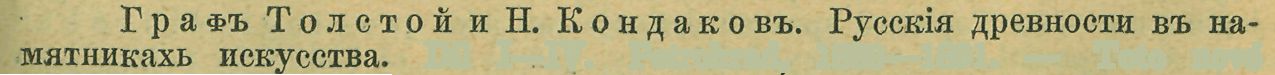 Díl I—IV. Petrohrad, 1889—1891. — Toto nové velké dílo ruské neobsahuje, jak by se mohlo z titulu soudit, líčení starožitností veškeré Rusi, nýbrž jen ruských krajů černomořských. Proto také ve francouzském překladě, který počal loni vycházeti redakcí S. Eeinacha, bylo