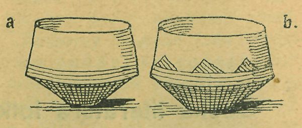 Z ostatních střepů podařilo se mně shledati a slepiti nádobu, koflíku podobnou s ouškem. Kromě nádoby té byla tu ještě jedna, podoby misky, jak střepiny nasvědčovaly. Slepiti se nedala, poněvadž