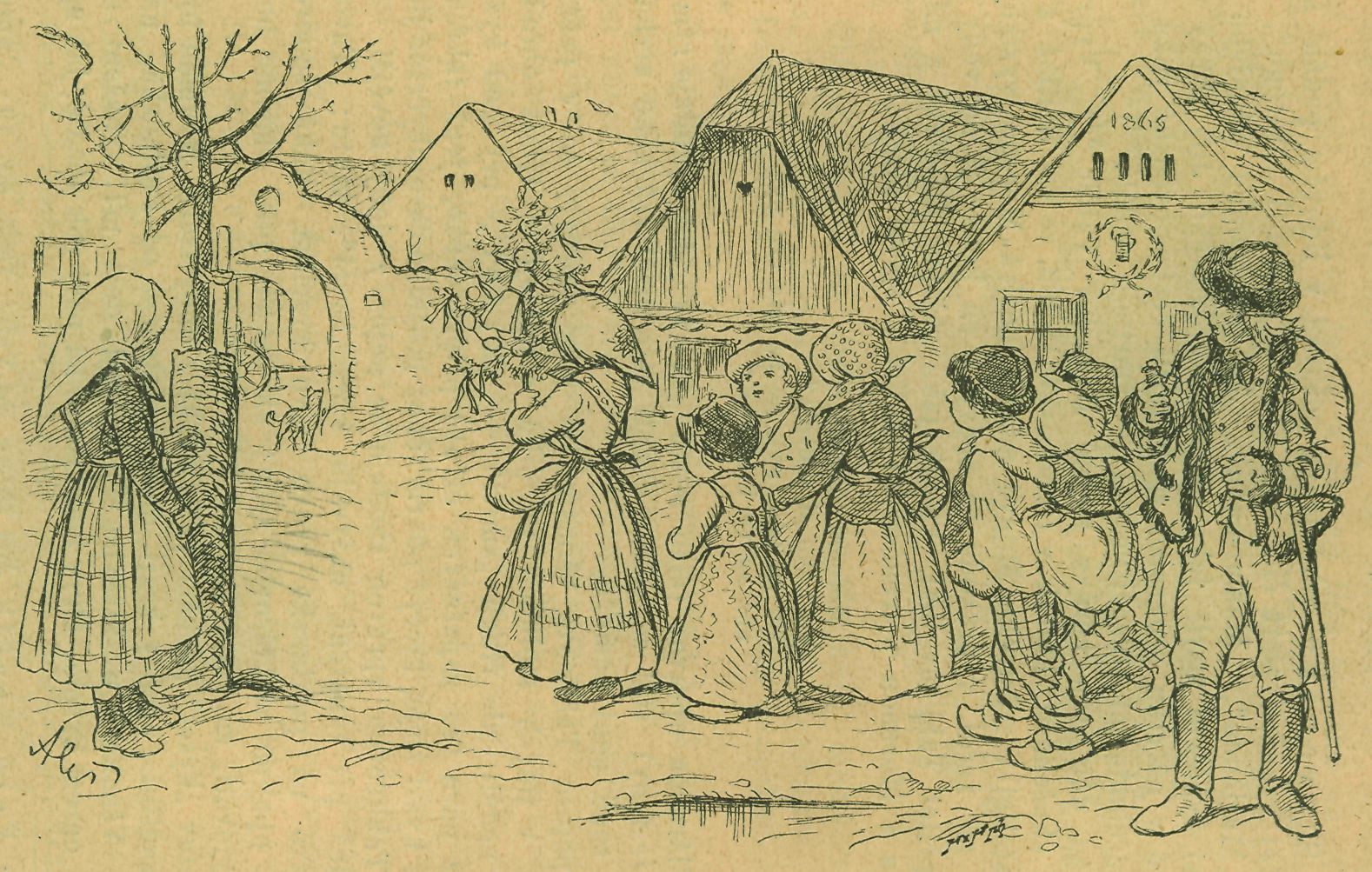Vynášení smrti v Jihočesku. Kresba Mikoláše Alše..