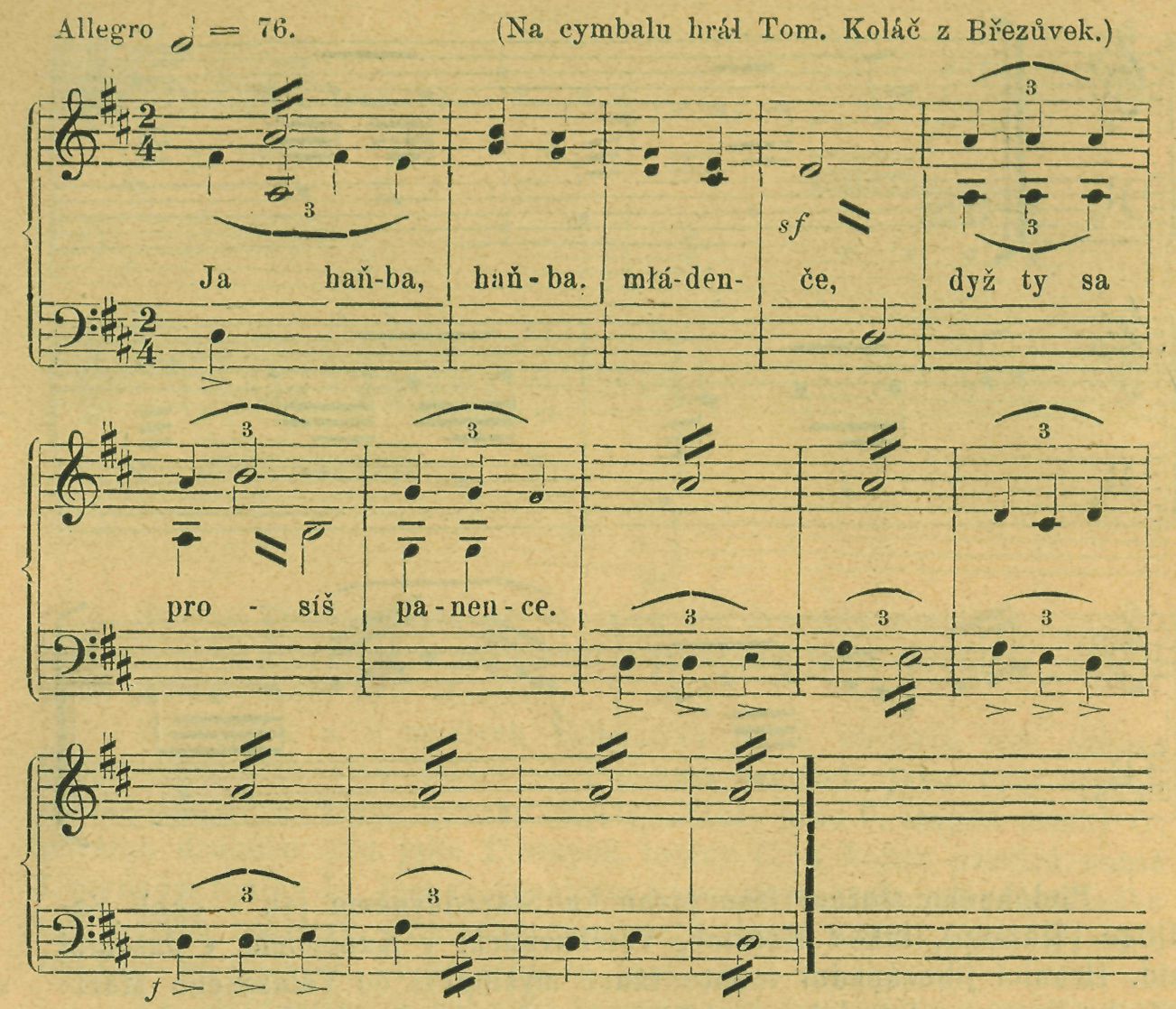 Ó, věru podivno! Je-li Starosvětská na Slovácku ohnivá, vzrušivá ve všech tvarecb, dojímá Starodávný lašský a valašský těžkými sice nápěvy, ale mírností v rytmu a klidem v tempu: a přece stejným způsobem se rozšiřují ve velikou rhapsodickou formu!