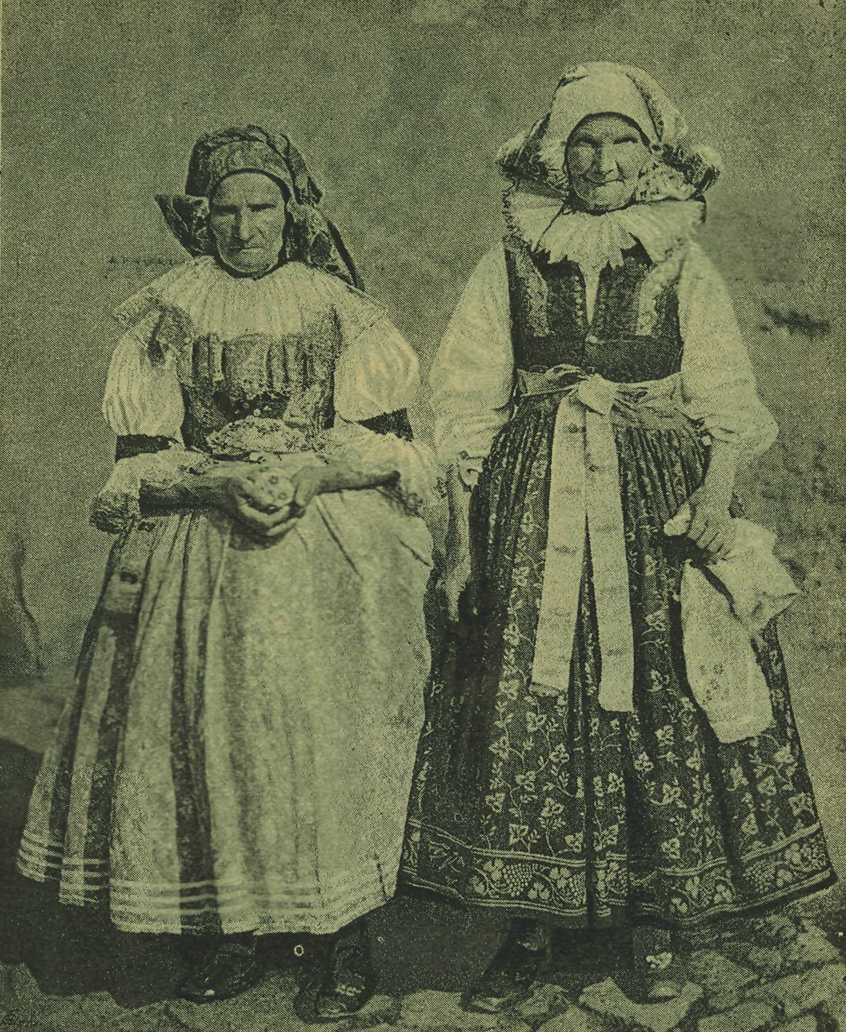 Dvě stařeny hanácké z Hrušky u Kojetína. (Na národopisné slavnosti kojetínské fotografoval prof. Jos. K 1 v a ň a.)