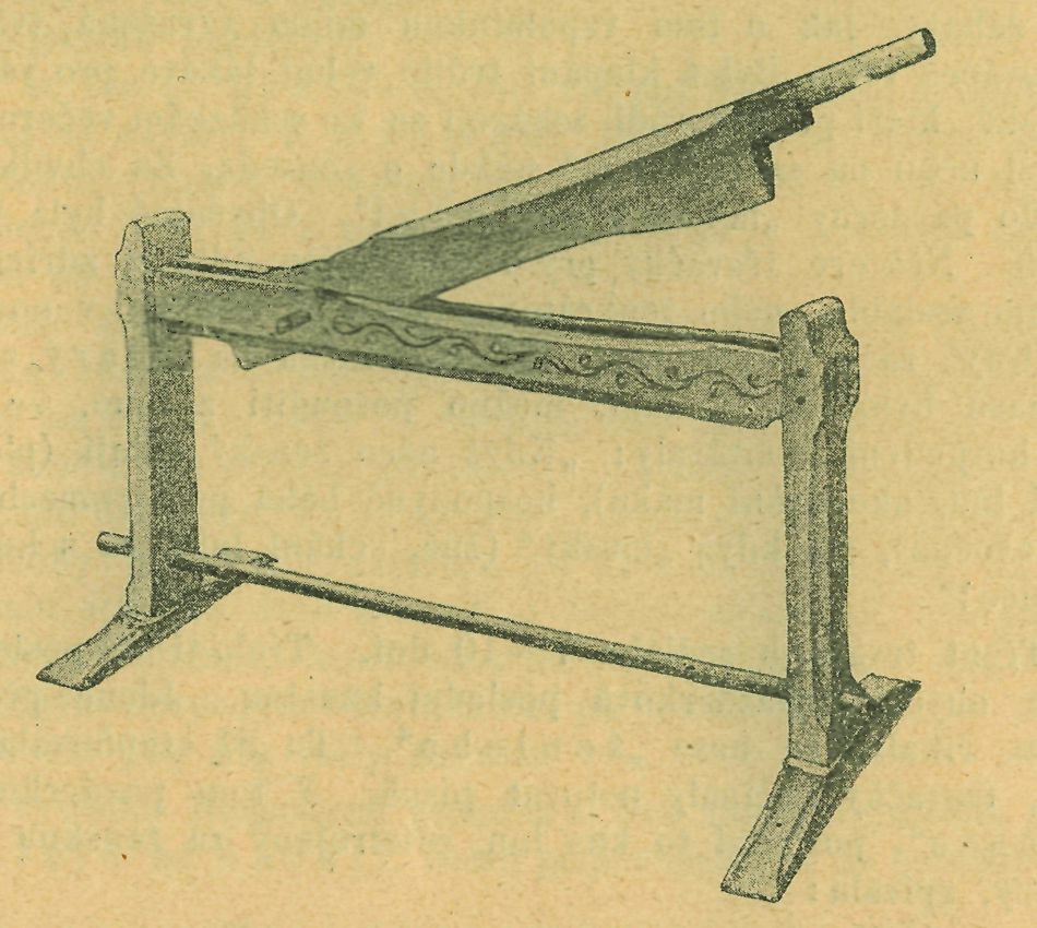 kouř a oheň ven se nedostal. Stavělo se patro. Postavili nízké kozy, na ně žebřiny a hradbičky, jak se právě hodilo. Patra byla dvě, malé ode dveří (p) a velké od okna (P). Na ně „nastavoval" se len na večer kořeny dolů. Byl-li krátký, že nesahal vysoko, položila se ještě naň vrstva lnu, čemuž se říkalo „polštářky". Do peci z kuchyně černé se málo na noc zatopilo, a nechal se len „vypařovat". Druhého dne večer a v noci se opět silně topilo (obyčejně pařezím na hrubo rozsekaným). Časně z rána již se „tře vačky" sešly a třelo se na trdlicích v kolně hned na čisto (č. 5.). Pazderkovou starostí bylo v noci topit, při čemž musil býti opatrný, aby v seknici prach nebo pazdero od horkých kamen nechytlo. Když se počalo