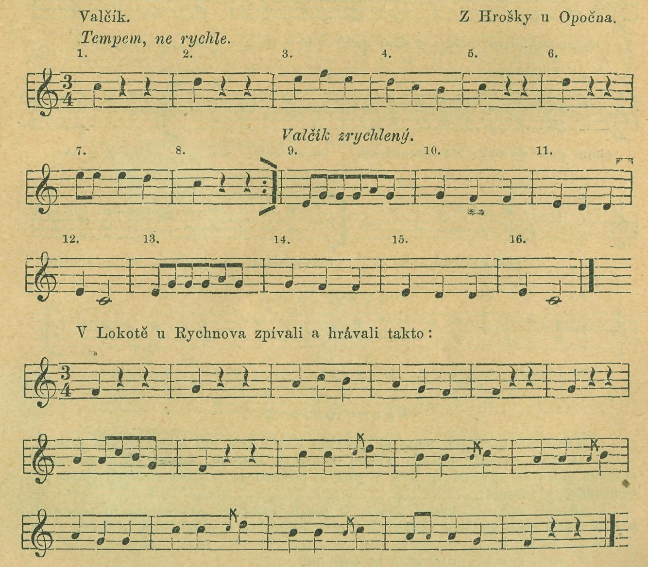19—20. ne 3, nýbrž 4 kroky půltaktové, a zároveň jest do kola na všechny 4 kroky do kolu dále se posmykovati (dáma napřed, pán za ni),