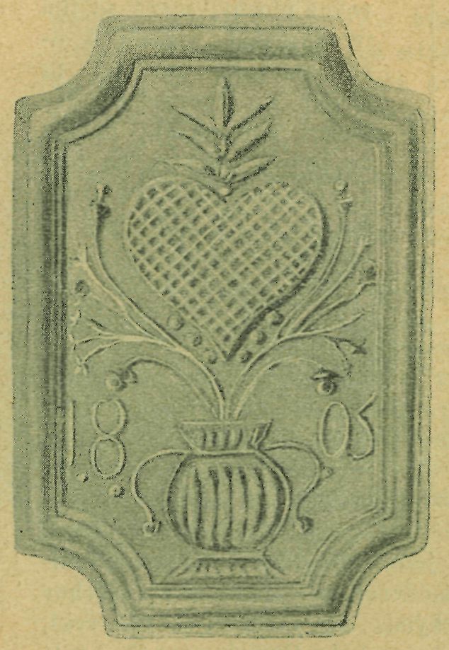 jest s obzvláštním vkusem volně rozložen i bezvadně vyřezán a poznáváme v něm ihned příbuznost rostlinných ornamentů moravských (obr. č. 4.). Na Zálesí v okresu humpoleckém hlaví plužňat zdobena jsou vesměs krásně rozloženými tvary rostlinnými. — Překrásné a originální jsou tvary rostlinné na sklemu (obr. č. 5.), které jsou odděleny tabulkou s nápisem majitele a růžicemi. Opět dovoluji si připomenouti, že kresbou věrně jest napodobeno rozložení tvaru, a že i řezba těchto ozdob kolářských nebývá nikdy kostrbatá.