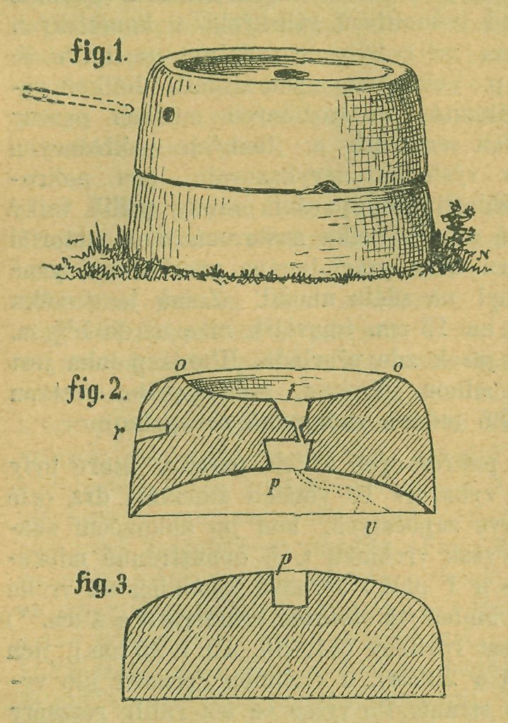 Dobu těchto ručních mlýnků pro nedostatek bližších pomůcek na určito stanoviti nelze. V mé přítomnosti pouze nalezen v hloubce 1 m mezi drobnými odštipky čediče a větších částí žernovů jeden střípek z nádoby velké, v rukou hnětené, z hlíny silně tuhou promíšené, barvy tmavošedé, lesklé, povrch 14 žlábky po šířce střípku 8 cm jako od zubu hřebene před vypálením mělce prohlouben, 15 mm silný; dále v jiných jamách našly se střípky pěti druhů nádob, z nichž 3 hrubší v rukou robené, ostatní střípky menších na kruhu točených nádobek s vyhrnutým okrajem ze šlemované hlíny, barvy špi-navohnědé a tmavošedé. Z prvnějších 3 střípků jsou 2 barvy šedé a 1 světlohnědé, 1*7 cm silných stěn, na drobno roztlučenou slídou hojně promíšených.