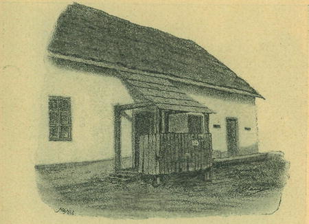 (látka == nádoba na mléko, smetanu, krajáč, vrhlice). O oblibě její svědčí, že nebývá jí opomenuto ani u nových zděných statků, jenom že tvar její přizpůsoben jest stavivu. Jest prostornější, má zděné sloupy sklenutými oblouky spojené a nad nimi vlastní vikýřovitou střechu. V jednom statku v Kylešovicích jest nad podsíňkou světnička. Pevnými stěnami jest podsíňka opatřena, je-li vcbod z návsi. Takového druhu jest u rodného domku Křížkovského v Holasovicích a u bývalé hospody v téže dědině (obraz č. 3.)-