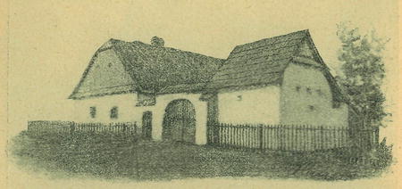 Čís. 5. Statek č. 20 se srubem v Kylešoviuích. Pohled z návsi. Kreslil V. Hauer.