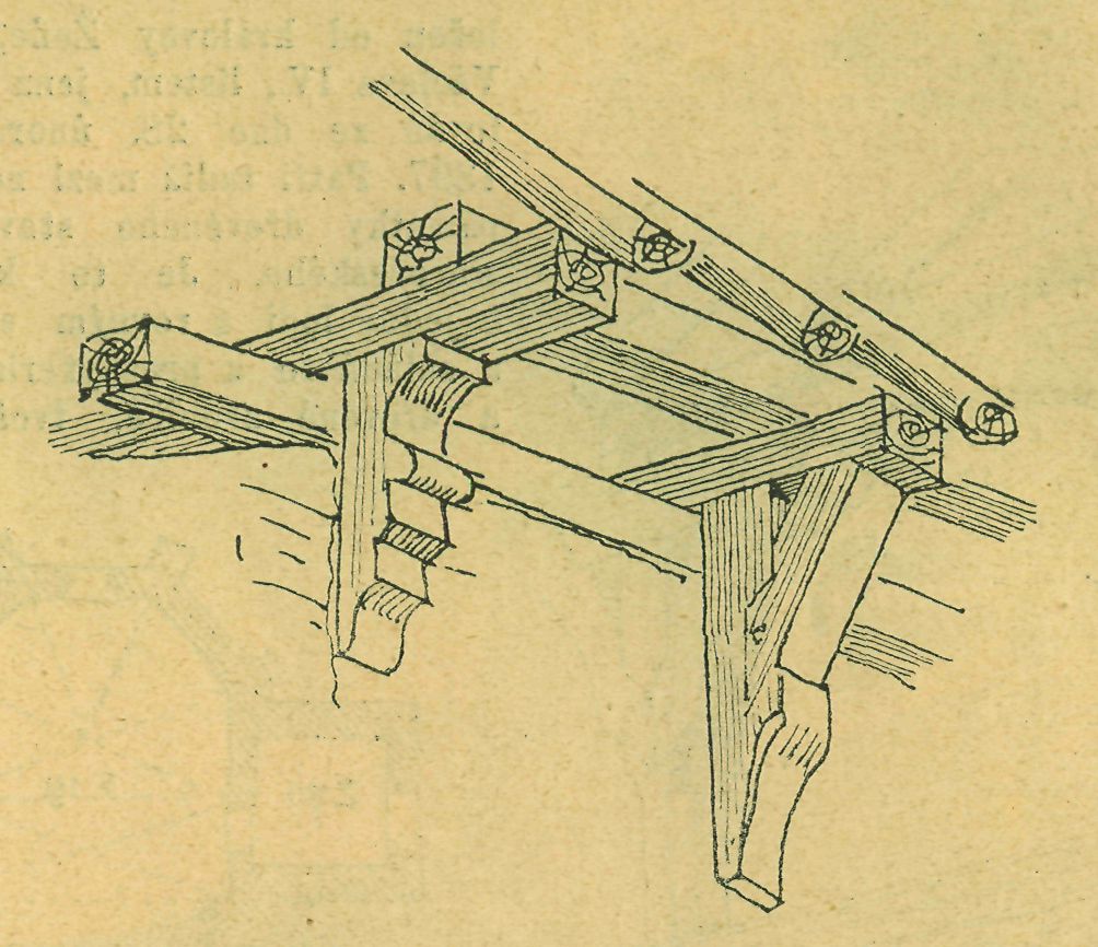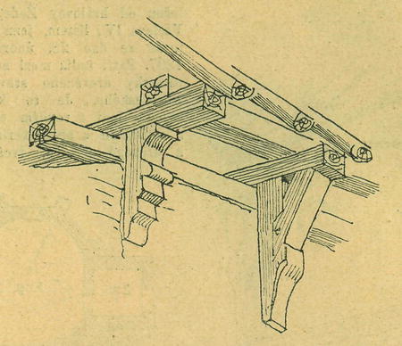 Čís. 1. Vazba trámů střechy u presbyteria. Náčrtek prof. J. K o u 1 y.