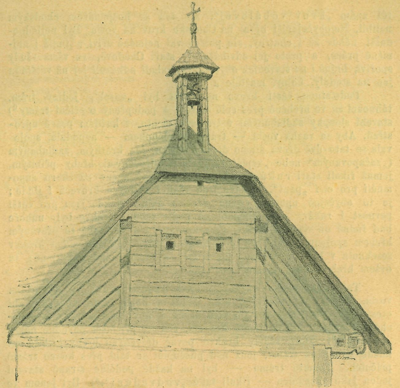 Ve krovu na vosla není harabalek: není je nač bytelně zavěsiti. A není ani valby! „Kožní" sloupy, podpírající vosla, trčí až do-hřebenu, nemůže tu tedy býti roh střechy sražen. Při „zdvihání" krovu na vosla postupuje se takto: Ve středech trámů vztýčí se sloupky, jež mají vosla nésti, na ně se nadije (na čapy) vosel a utáhne se rukávy. Sloupky uvnitř mají po každé straně jeden rukáv, sloupky „rožní" mají jen po jednom (dovnitř).