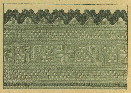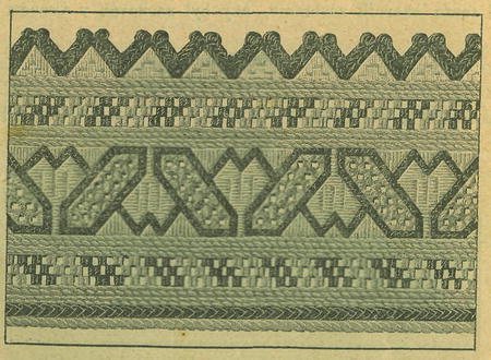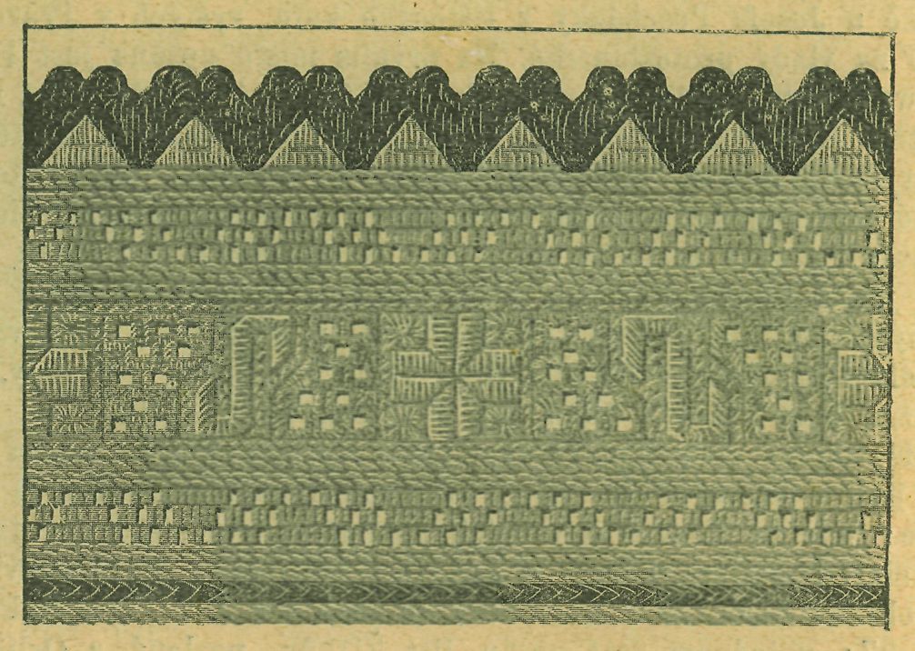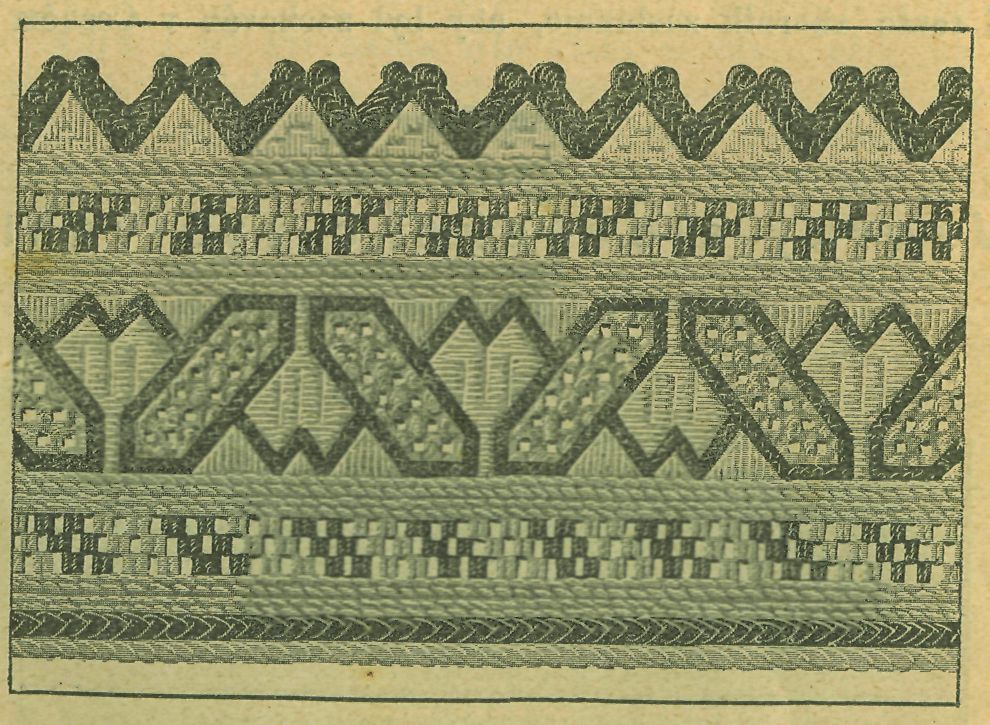 Čís. 2. „Na ostrožk u". Černým hedvábím (zuby a řetázek), ostatní vše žlutým.