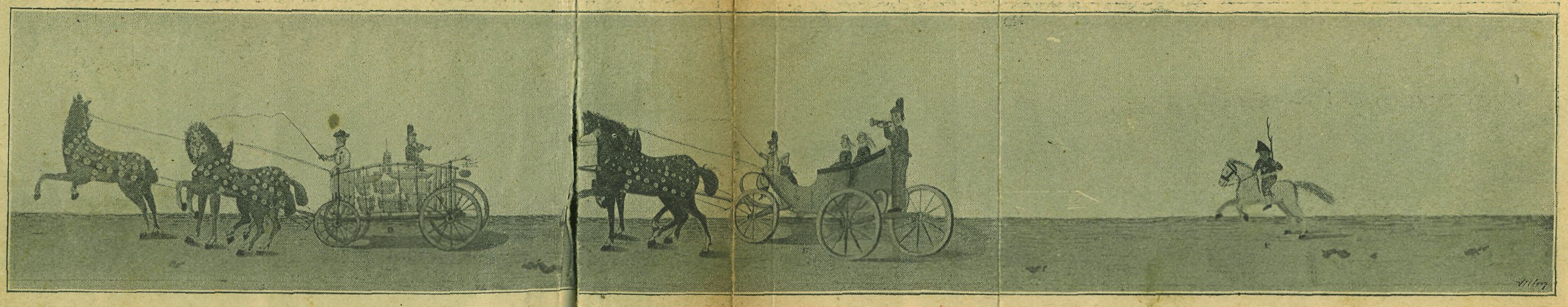 Vyobrazení převážení věna nevěstila při svatbě selské na panství Litomyšlském.