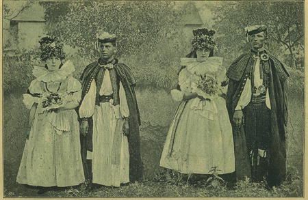 Svatebčané hanáčtí z Křenovic u Kojetína. (Fotografia prof. J. Klvaně.)