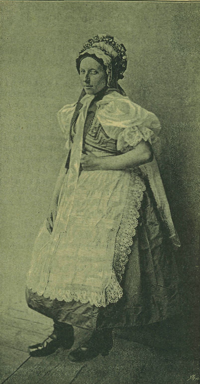 Nevěsta v „růži" z Doleních Bojanoyic n Hodonína. (Fotografie prof. J. Klvaně.)