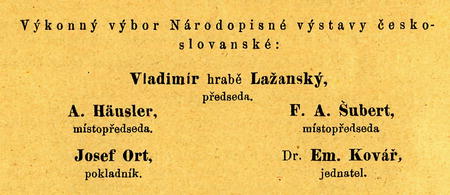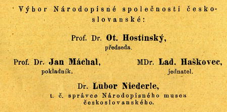 I obrací ae proto podepsané praesidium českoslovanské výstavy . národopisné spolu s praesidiem Českoslovanské společnosti národopisné ku všem jednotlivcům a korporacím, kteří výstavu obeslali nebo vhodné předměty ještě doma chovají, se snažnou prosbou, aby každý podle své možnosti a podle své lásky k lidu a k účelu vytknutému věci podobné Národopisnému museu českoslo-vanskému buď daroval nebo trvale k vystavení propůjčil a způsobem tím pojistil si vděčnost všech těch, kteří jednou ze sbírek musejních čerpati budou poučení, duševní občerstvení a snad i obrození!